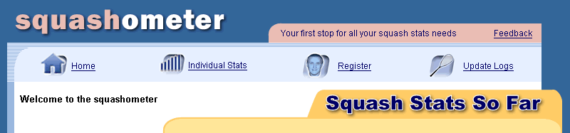 | Thanks for your interest, but The Squashometer has now closed. You can still view the stats from Easter term 2003, if you want. |